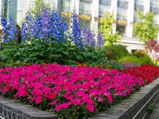 蓝紫、桃粉、麦黄、玫红......一团一团的色彩,柔和和谐,而又富有层次,犹如油画一般。这几天,双流街头绿地“莫奈花园”惊艳出圈。在双流广场绿地、南昌路绿地、紫东阁绿地和西北街绿地暖色系花卉毛地黄,搭配着蓝紫色大花飞燕草等冷色调植物,色彩柔和,层次丰富。梦幻蓝紫的大花飞燕草、可爱的毛地黄、粉嫩的玛格丽特,勾勒出春日里最温柔浪漫的景致。